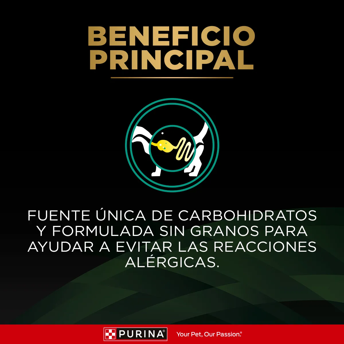 Alimento completo para gatos adultos de todas las razas formulado para ayudar en el tratamiento de alergias o intolerancias alimentarias.